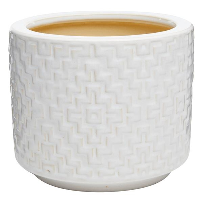 Explore what’s right around the corner. Choose your own adventure every day. Savor it all and say yes to what comes next. Found & Fable is a global collection only found at At Home. Highlight your green thumb and showcase your annuals and perennials at your front door or add a touch of festive foliage to your deck with our stylish 8in. small white reactive glazed geo ceramic indoor pot. More than just a spot to display your gardening skills and your favorite plants, this modern pot has a contemporary appearance with its wonderful allover textured linear geo design. Created to live indoors or in a covered outdoor space, it’s ready to make your plants pop.Dimensions8.3″ L x8.3″ W x7.1″ H Weight3.9 lbs.ColorwhiteMaterialCeramicDepartmentPatioLocationOutdoor DcorUPC197154133453Location ID42-GL02B