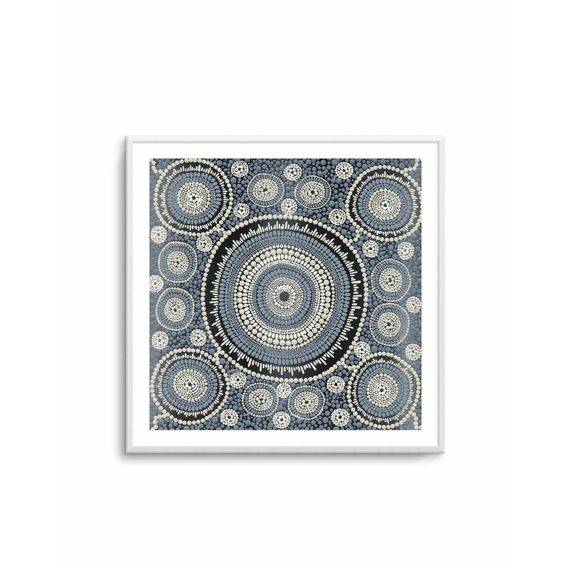 Grey themed circle patterned Indigenous Australian - Aboriginal Dot artworkAll art prints are printed with the highest-quality materials and professional printers. You can trust our craftsmanship and attention to detail when it comes to decorating with fra