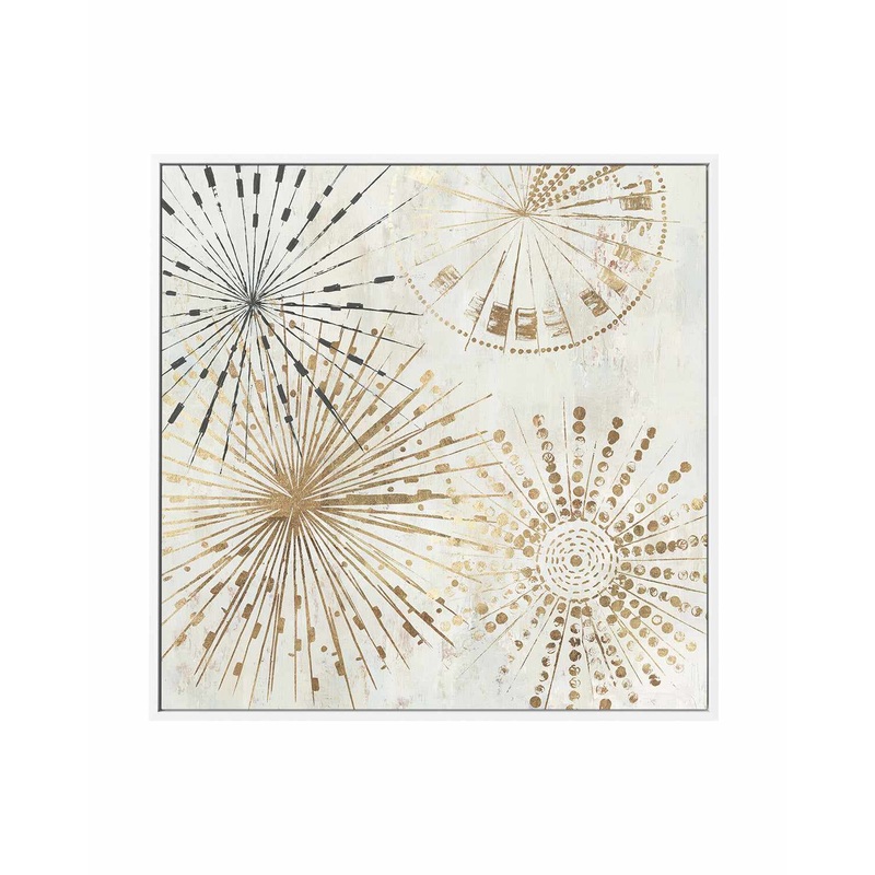 Add some modern decor into your living space with 'Golden Stars II', a stunning painting reproduction framed canvas print featuring an abstract design with gold coloured stars on a neutral background. Perfect for any living room, dining room, bedroom or ho