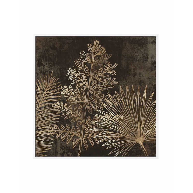 Shop stunning modern abstract art with 'Golden Tropics II', a stunning painting reproduction framed canvas print featuring stunning fern leaves with gold colours on a black background. Our canvas wall art is proudly printed right here in Australia with the