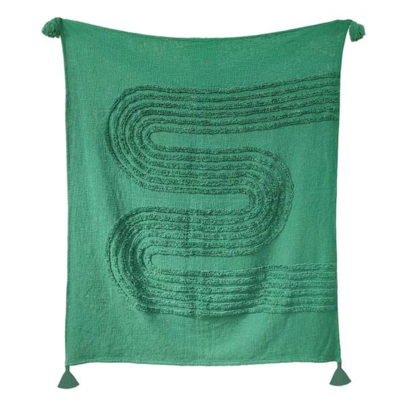 Bring a touch of texture to your space. Wrap yourself in stylish comfort with the Found & Fable Green Cotton Tufted Wave Throw Blanket. Made from 100% cotton, this throw blanket adds a cozy yet trendy element to any room. Whether you're curled up on the co