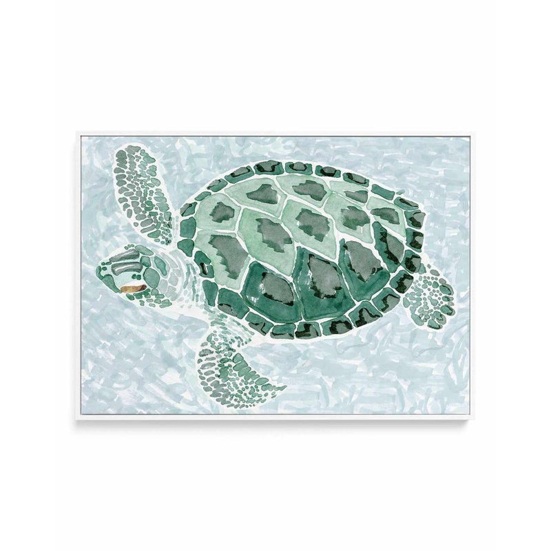 Transform your child's bedroom decor with 'Green Turtle II', a kids bedroom framed canvas print featuring a gorgeous green turtle in a pastel blue sea. Perfect for a boy's bedroom or a living room, dining room or home office after a modern look. If you're