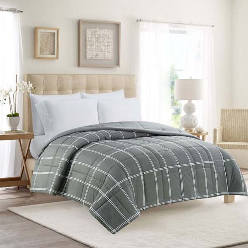 Grey Grid Print Reversible Brushed Microfiber Comforter, King