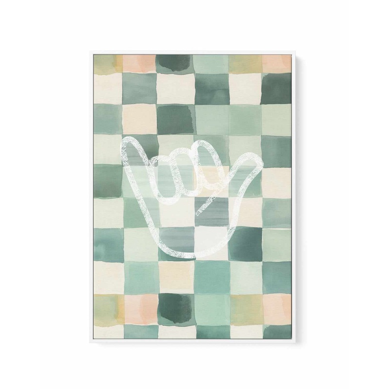 Text Style Hand Sign with a Checkered Pattern Turquoise and Blue Green Background Illustration ArtAll canvas art prints are printed with the highest-quality materials and professional printers. You can trust our craftsmanship and attention to detail when i