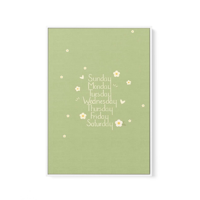 Days Typography Surrounder by White Flowers on Apple Green Background Illustration ArtAll canvas art prints are printed with the highest-quality materials and professional printers. You can trust our craftsmanship and attention to detail when it comes to d