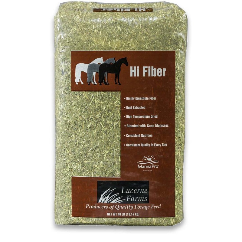 Hi-Fiber is a measured blend of timothy, oat, and alfalfa hay blended with molasses. This high-fiber hay offers your horse a diverse forage blend thats perfect for horses of every age and skill level. High-temperature dried and dust-extracted to retain nutrients and eliminate mold, this high-fiber hay for horses makes it an ideal all-around hay replacement, fiber supplement, and grain complement.