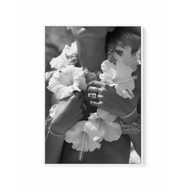 Woman Wearing a Hibiscus Flower Necklace with a Black and White Background Illustration ArtAll canvas art prints are printed with the highest-quality materials and professional printers. You can trust our craftsmanship and attention to detail when it comes