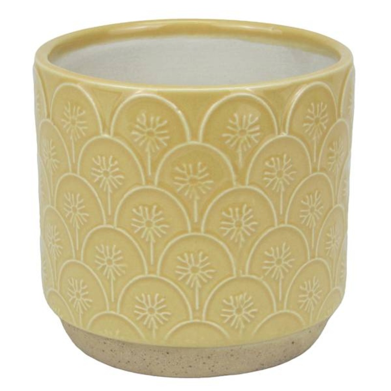 Modern farmhouse meets At Home prices in Honeybloom, our exclusive brand that celebrates life lived together. Highlight your green thumb and showcase your annuals and perennials at your front door or lend a pop of festive foliage to the deck with our 4in. Honeybloom Indoor Aster Yellow Flower Planter. More than just a spot to display your gardening skills, this wonderful textured scalloped floral ceramic pot offers a convenient display with its interesting shape. Designed to live indoors or in a covered outdoor space, it’s ready and waiting to make your plants pop.Dimensions4.0″ L x4.0″ W x3.8″ H Weight4.4 lbs.ColoryellowMaterialCeramicDepartmentPatioLocationOutdoor DcorUPC197154348390Location ID42-TG01A