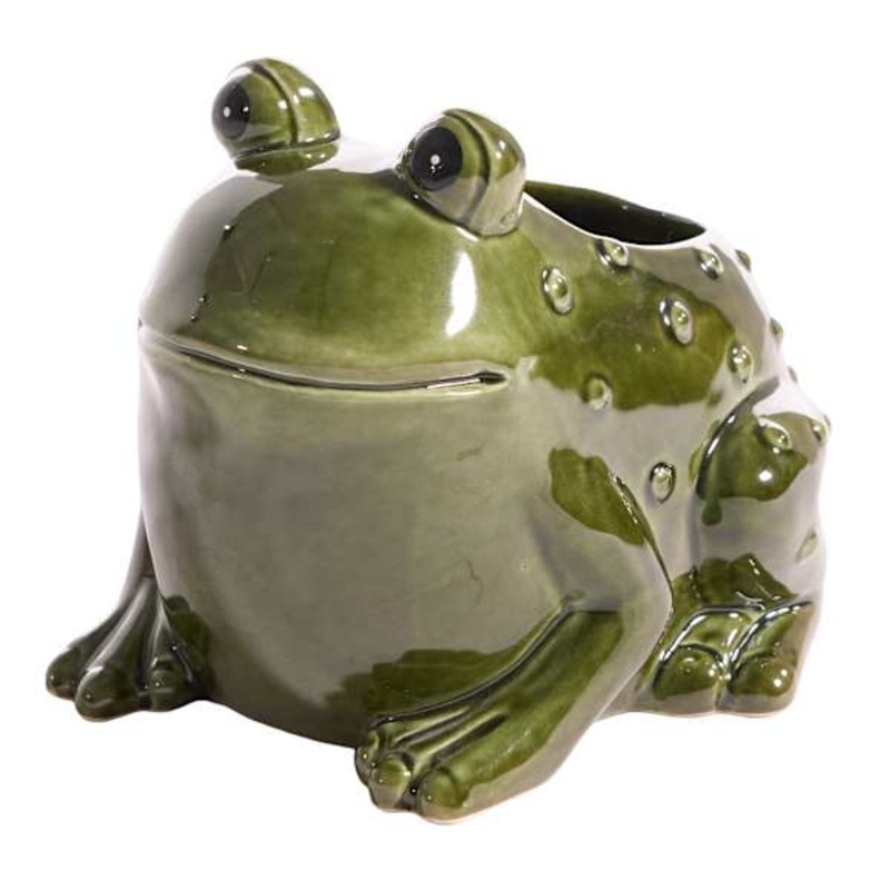 Modern farmhouse meets At Home prices in Honeybloom, our exclusive new brand that celebrates life lived together. Highlight your green thumb and showcase your annuals and perennials at your front door or add a touch of festive foliage to the deck with our stylish 5in. green ceramic frog planter. More than just a spot to display your gardening skills, this wonderful figural frog pot offers a shiny glazed appearance with its interesting design and shape. Designed to live indoors or on a covered patio, this green ceramic pot is ready and waiting to make your plants pop.Dimensions5.4″ L x4.9″ W x4.7″ H Weight1.1 lbs.ColorgreenMaterialCeramicDepartmentPatioLocationOutdoor DcorUPC789112963303Location ID42-TG01A