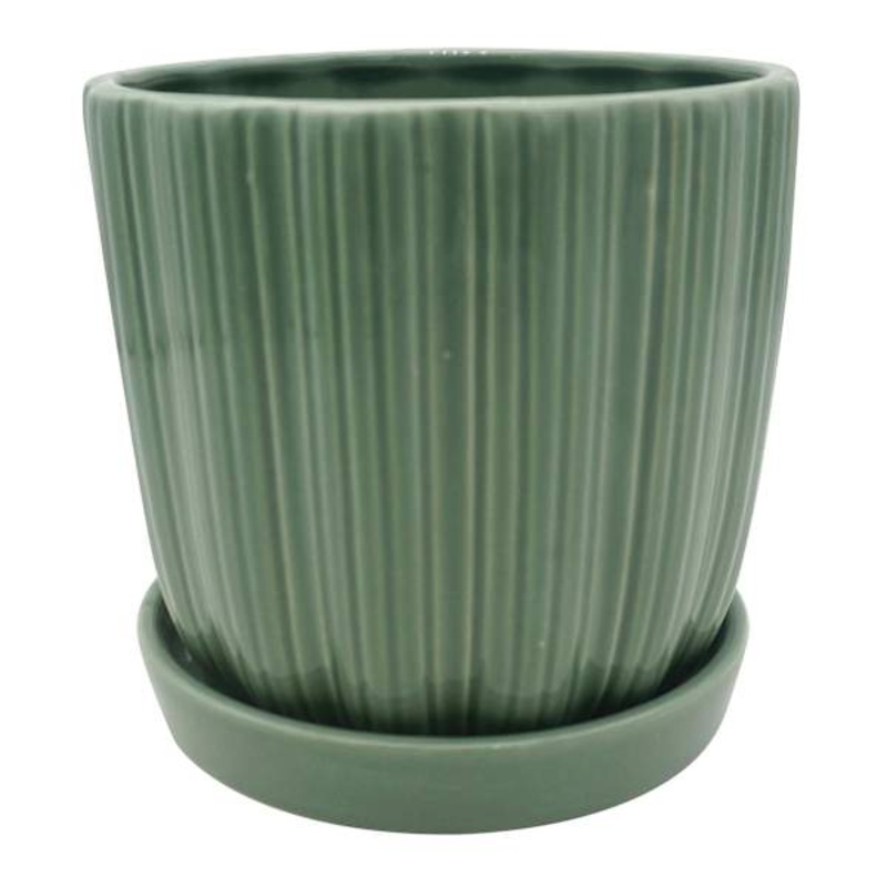 Modern farmhouse meets At Home prices in Honeybloom, our exclusive brand that celebrates life lived together. Highlight your green thumb and showcase your annuals and perennials at your front door or lend a pop of festive foliage to the deck with our 5in. Honeybloom Indoor Green Ceramic Planter. More than just a spot to display your gardening skills, this wonderful ribbed stripe ceramic pot with drip saucer offers a charming display with its traditional shape. Designed to live indoors or outdoors, it’s ready and waiting to make your plants pop.Part of the Honeybloom collection.Features drainage hole.Saucer included.Perfect addition any garden.Crafted from ceramic.Dimensions5.1″ L x5.1″ W x5.2″ H Weight1.5 lbs.ColorgreenMaterialCeramicDepartmentPatioLocationOutdoor DcorUPC197154347331Location ID42-TG01A