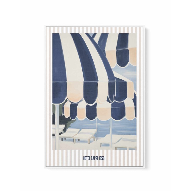 Blue and White Colored Parasols with a Dark Blue and Ocean View Background Illustration ArtAll canvas art prints are printed with the highest-quality materials and professional printers. You can trust our craftsmanship and attention to detail when it comes