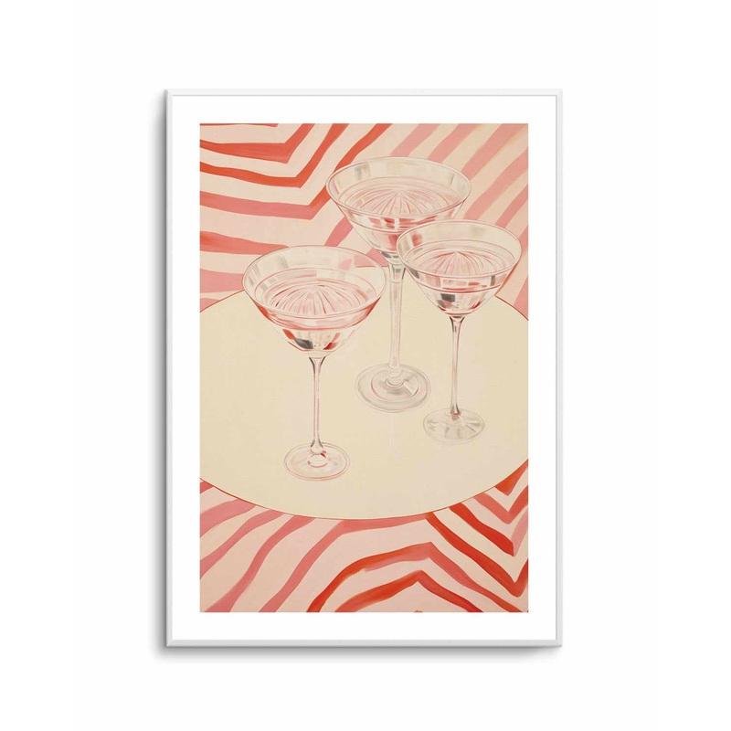 Tray of Cocktail Crystal Glasses on Top of Pink and Beige Patterned Tablecloth Illustration ArtAll art is printed right here in Australia with the highest-quality materials and professional printers. You can trust our craftsmanship and attention to detail