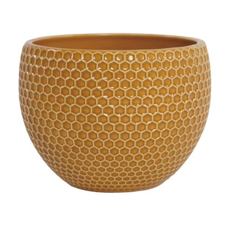 Highlight your green thumb and showcase your annuals and perennials at your front door or add a touch of festive foliage to your deck with our stylish medium size indoor Hammer Shiny Yellow Ceramic Planter. More than just a spot to display your gardening skills and your favorite plants, this yellow honeycomb design pot has a decorative appearance with its wonderful design. Created to live indoors or in a covered outdoor space, it’s ready to make your plants pop.Dimensions6.7″ L x6.7″ W x4.9″ H Weight1.6 lbs.ColoryellowMaterialCeramicDepartmentPatioLocationOutdoor DcorUPC197154223550Location ID42-GL02A