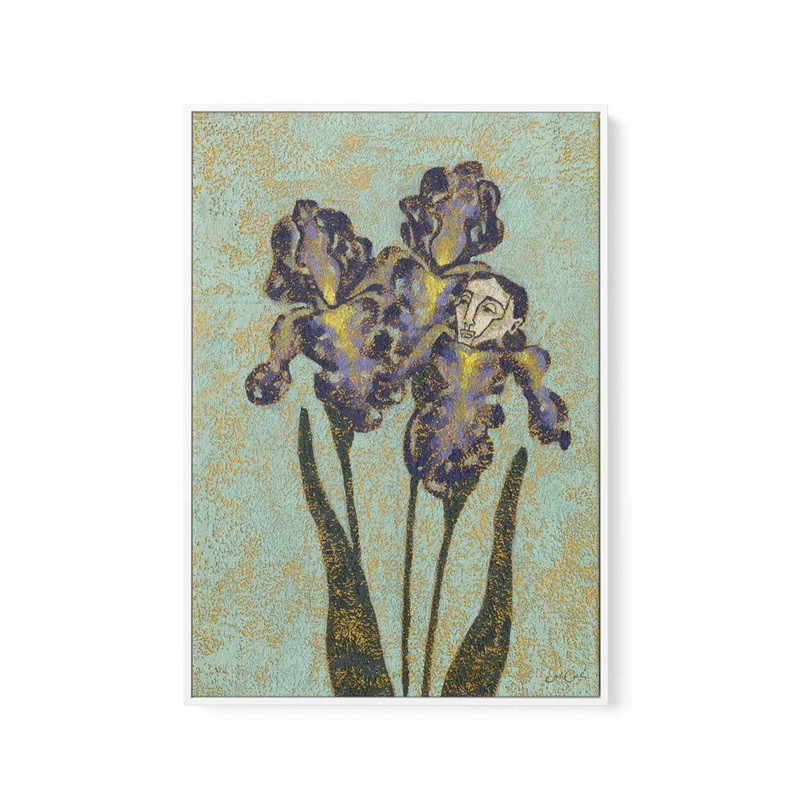 Iris Flowers with a Face of a Woman Growing on the Other having a Dark Toned Grass and Light Green Background IllustrationAll canvas art prints are printed with the highest-quality materials and professional printers. You can trust our craftsmanship and at