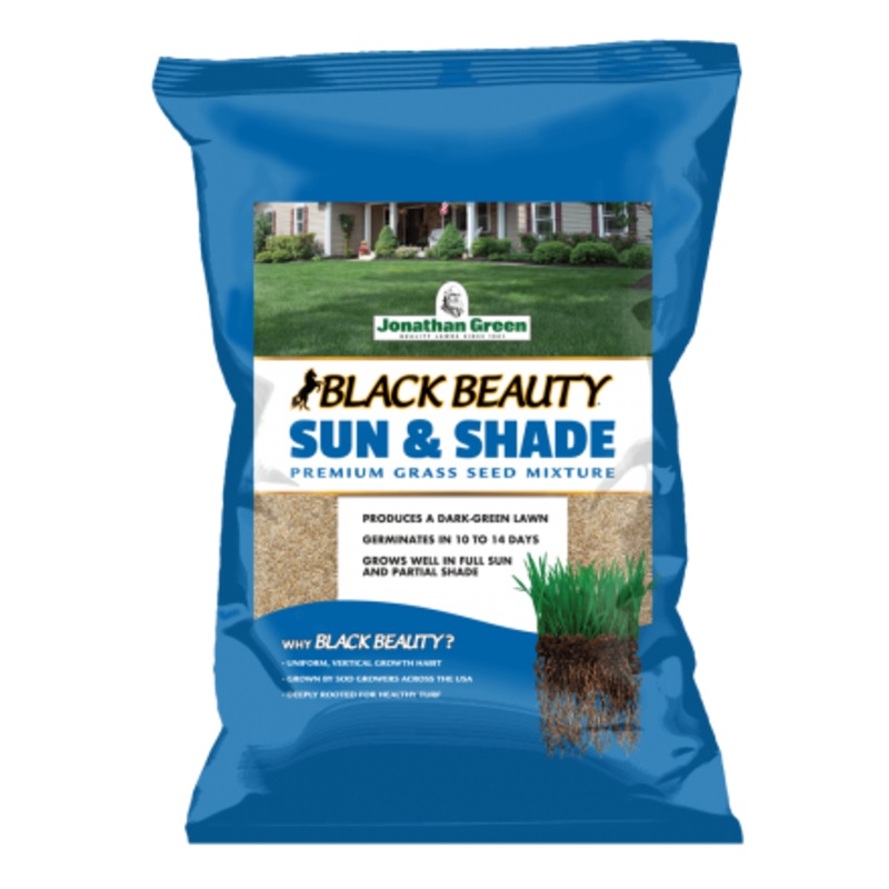 Jonathan Green Black BeautySun & Shade Grass Seed performs exceptionally well in either full sun or partial shade growing conditions. This mix is perfect for overseeding and will fill in bare spots quickly to improve the appearance of an entire lawn. Sun & Shade contains turf-type tall fescues, Kentucky bluegrass and perennial ryegrass making this our most versatile grass seed mixture. This seed germinates in 7 14 days.