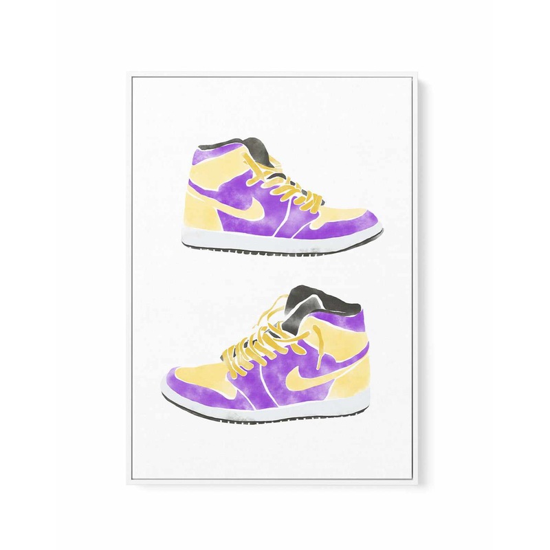 Purple and Yellow Lakers Sneaker Shoes Illustration ArtAll canvas art prints are printed with the highest-quality materials and professional printers. You can trust our craftsmanship and attention to detail when it comes to decorating with framed art from
