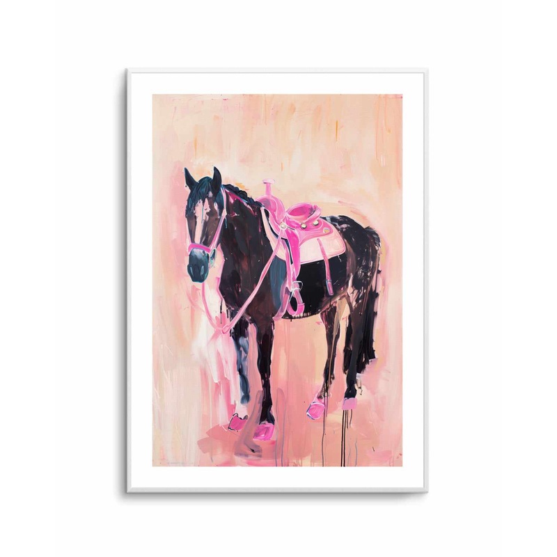 A Black Horse with a Pink and Beige Themed Background Illustration ArtAll art is printed right here in Australia with the highest-quality materials and professional printers. You can trust our craftsmanship and attention to detail when it comes to decorati