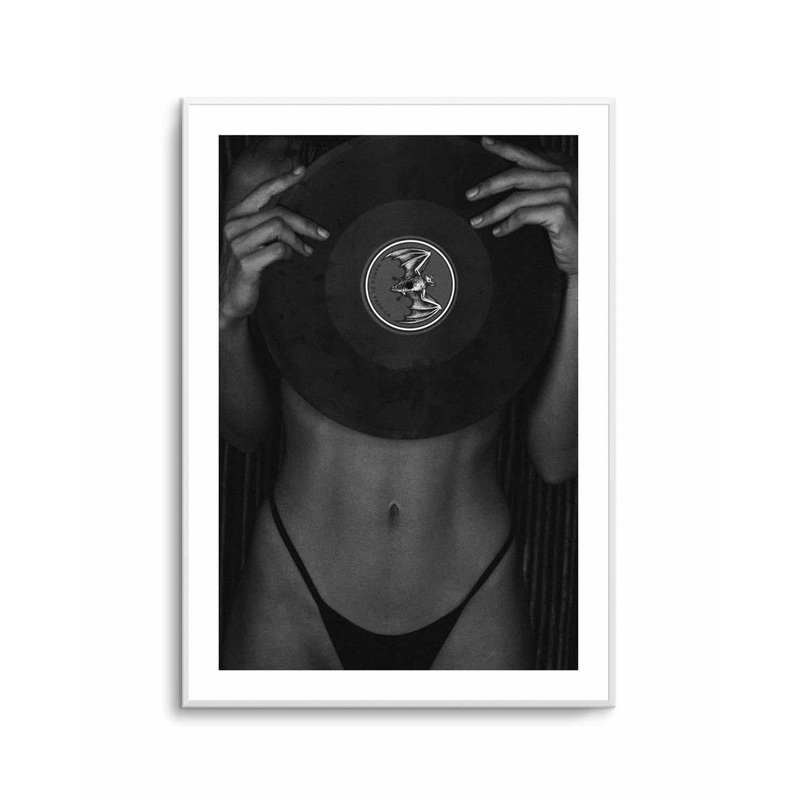 Woman holding a vintage vinyl record, an exclusive photographic artwork by founder, Teigan Geercke.All art is printed right here in Australia with the highest-quality materials and professional printers. You can trust our craftsmanship and attention to det