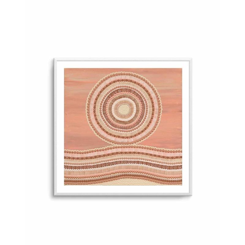 Creating a warm, inviting home can be difficult, but with the beautiful ‘No Matter How Far’ art print by Karissa Undy it becomes easier than ever. This gorgeous dot painting reproduction is sure to create a sense of comfort and security as its rich coral tones and earthy browns fill your space with warmth. This stunning wall art captivates viewers with its circles design that is deeply entrenched in aboriginal art styles, allowing you to bring a piece of indigenous culture into your home.