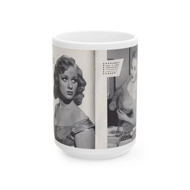 Norma Sykes #150 – 66 PHOTOGRAPHS OF Sabrina U.K. Pocket Mag. Pages 30 & 31 (Vintage Female Icon) White Coffee Mug