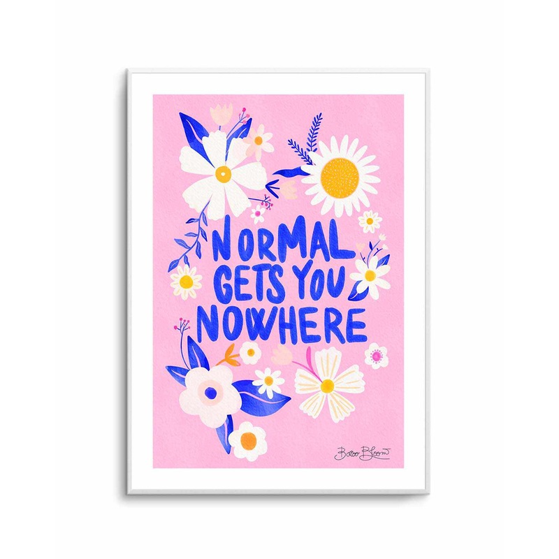 Normal Gets You Nowhere Typography Surrounded By Flowers on Pink Background Illustration ArtAll art is printed right here in Australia with the highest-quality materials and professional printers. You can trust our craftsmanship and attention to detail whe