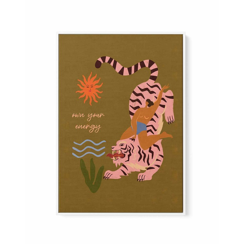 Lady Riding A Tiger With Own Your Energy Caption Illustration ArtAll canvas art prints are printed with the highest-quality materials and professional printers. You can trust our craftsmanship and attention to detail when it comes to decorating with framed