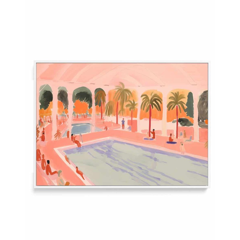 Palm Trees and Pools on an Open Building With a Light Orange and Pink Pastel Colored Background Illustration ArtAll canvas art prints are printed with the highest-quality materials and professional printers. You can trust our craftsmanship and attention to