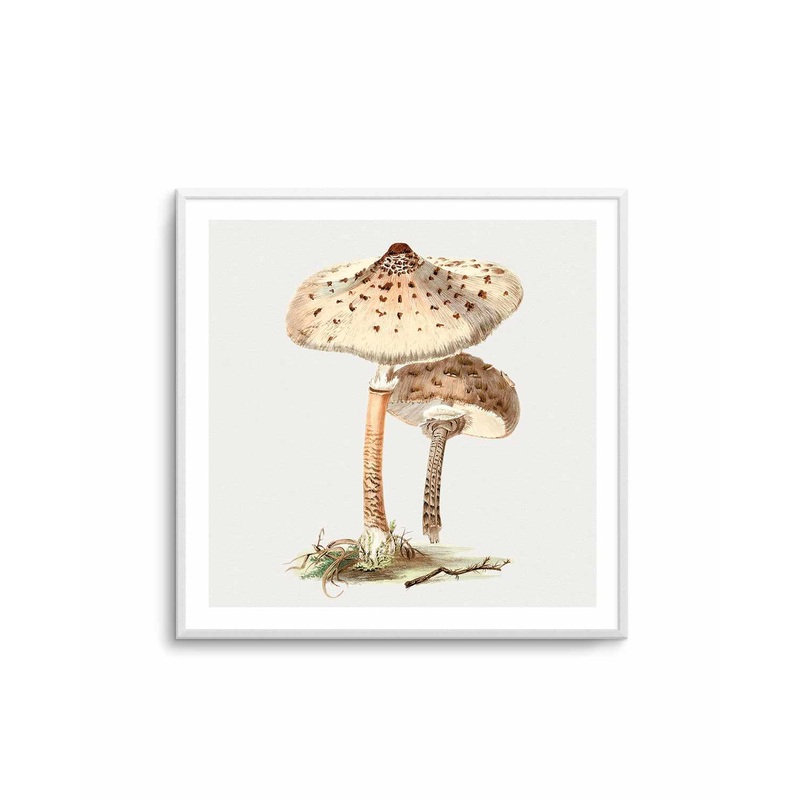 Enhance your home’s decor with ‘Parasol Mushroom Vintage Illustration’, a vintage poster wall art print featuring an illustration of mushrooms with subtle brown and beige tones. Whether it’s for your living room, dining room, kitchen, bar or office, this high-quality artwork is the perfect way to inject some retro charm into your home.