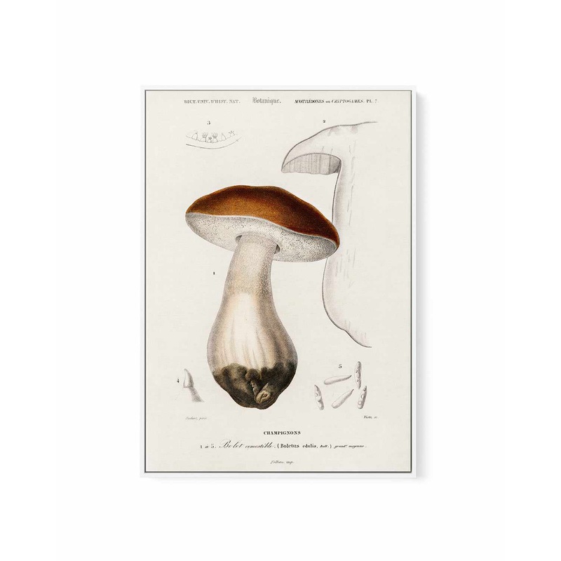 Penny Bun Vintage Mushroom Illustration | Framed Canvas Art Print