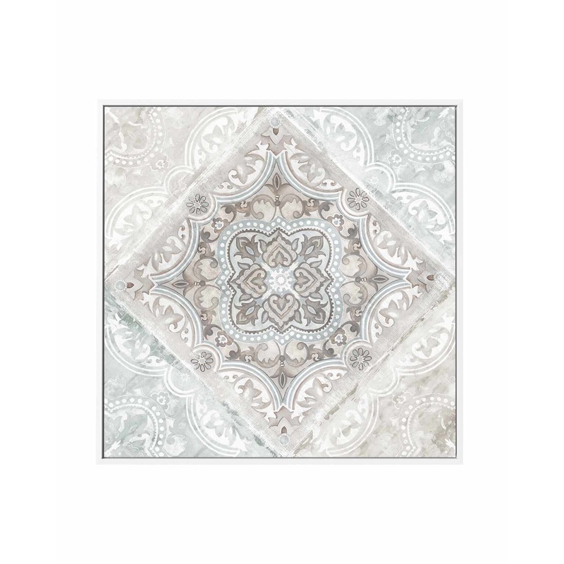 Transform your living space with 'Persian Dreams', a boho illustration framed canvas print featuring a stunning tile pattern with a pretty pattern of subtle blues and whites. Perfect for a bedroom, living room, dining room or home office after a boho look.