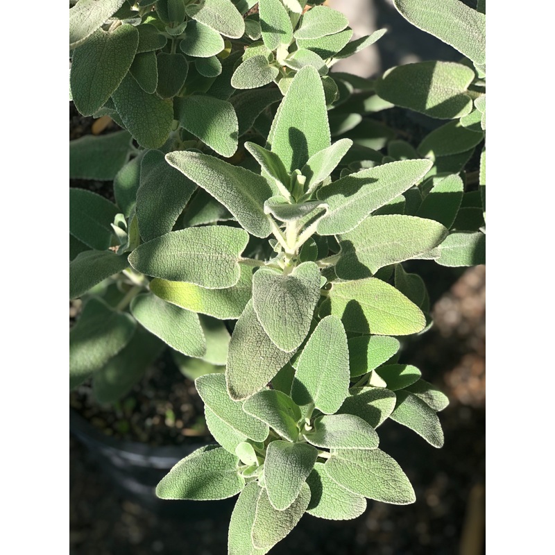 A most pleasing evergreen shrub in the Cistus Nursery garden with rounded silver/white leaves to about 3 inches on plants usually about 4 by 4ft. In spring and occasionally throughout the year, small towers of buttery yellow flowers float like pom poms on upright stalks. Particularly attractive given little summer water full sun and sharp drainage. We prune old seed heads once a year to tidy. USDA zone 8a.