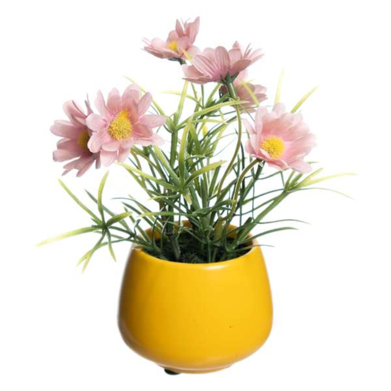 Pink Daisy in Yellow Ceramic Pot, 6″