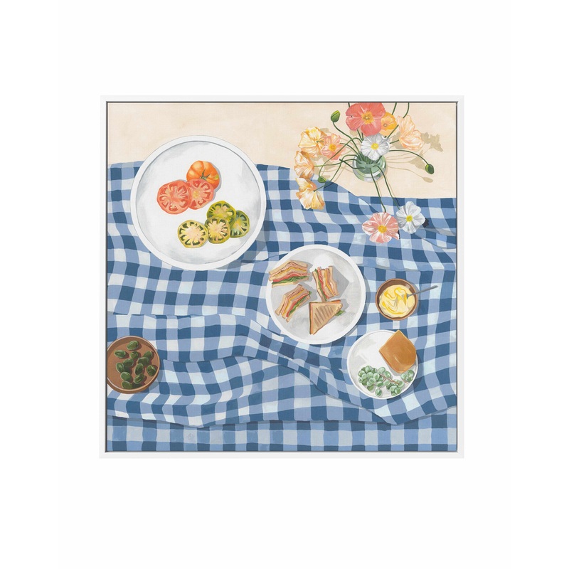 Sandwich and Tomatoes on Top of Checkered Blue TableclothStill Life Picnic IllustrationsAll canvas art prints are printed with the highest-quality materials and professional printers. You can trust our craftsmanship and attention to detail when it comes to