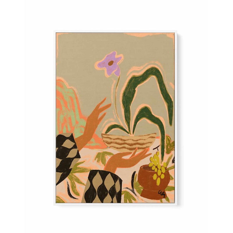 Hands Reaching Out For Bowl With Violet Flower Illustration ArtAll canvas art prints are printed with the highest-quality materials and professional printers. You can trust our craftsmanship and attention to detail when it comes to decorating with framed a