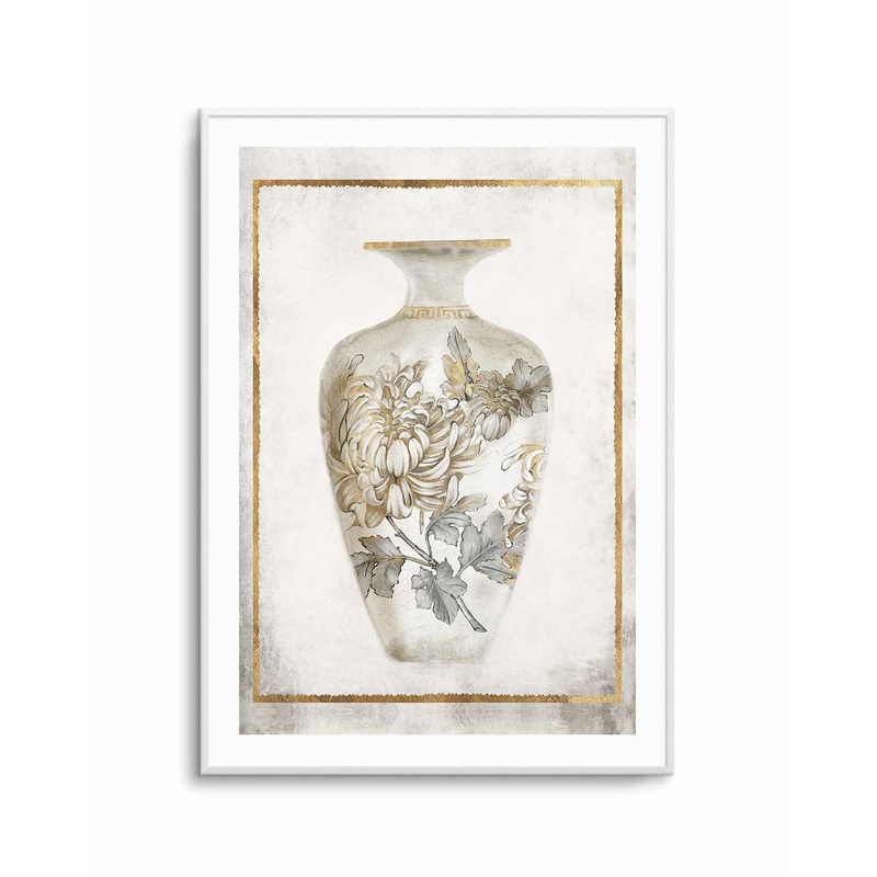 Transform your living space with 'Priceless Vase II', a gold toned painting reproduction wall art print featuring a stunning vase with gold and neutral coloured floral designs. Whether it's for your bedroom, living room, dining room or office, this high-qu