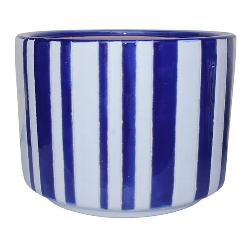 Be the first to review “Providence Indoor Blue & White Striped Ceramic Planter, Large | At Home”