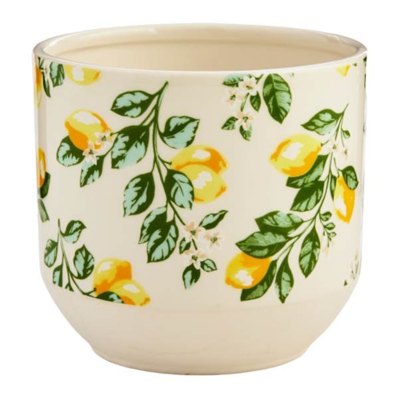 A collection that lets everyone relax in style. Polished finishes and classic hues pair with fun finds. Providence is where elegant settings still feel comfortable and warm-exclusively At Home. Highlight your green thumb and showcase your annuals and perennials at your front door or lend a pop of festive foliage to the deck with our 6in. Providence Indoor Lemon Planter. More than just a spot to display your gardening skills, this wonderful white and lemon print ceramic pot offers a convenient display with its interesting shape. Designed to live indoors or in a covered outdoor space, it’s ready and waiting to make your plants pop.Dimensions6.1″ L x6.1″ W x5.7″ H Weight2.2 lbs.ColorwhiteMaterialCeramicDepartmentPatioLocationOutdoor DcorUPC197154351895Location ID42-GL02A