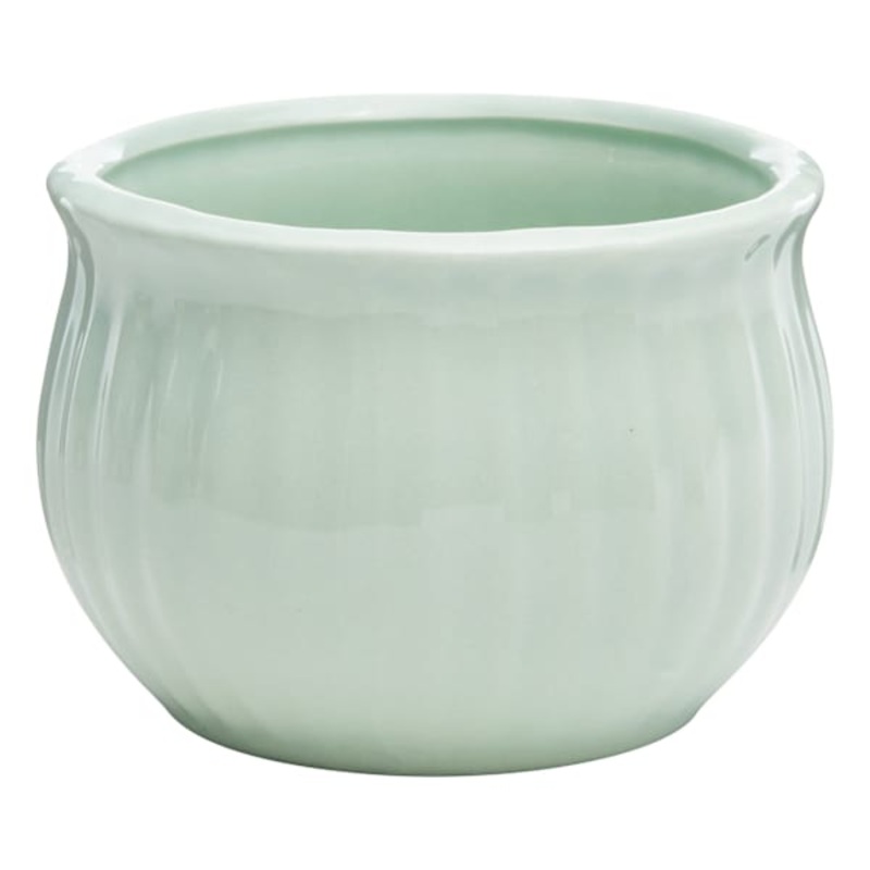 A collection that lets everyone relax in style. Polished finishes and classic hues pair with fun finds. Providence is where elegant settings still feel comfortable and warm-exclusively At Home. Highlight your green thumb and showcase your annuals and perennials at your front door or lend a pop of festive foliage to the deck with our 4in. Providence Indoor Mint Green Cabbage Planter. More than just a spot to display your gardening skills, this wonderful rounded flared pot offers a convenient display with its interesting shape. Designed to live indoors or in a covered outdoor space, it’s ready and waiting to make your plants pop.Dimensions4.3″ L x4.3″ W x3.3″ H Weight0.9 lbs.ColorgreenMaterialCeramicDepartmentPatioLocationOutdoor DcorUPC197154137642Location ID42-GL02A