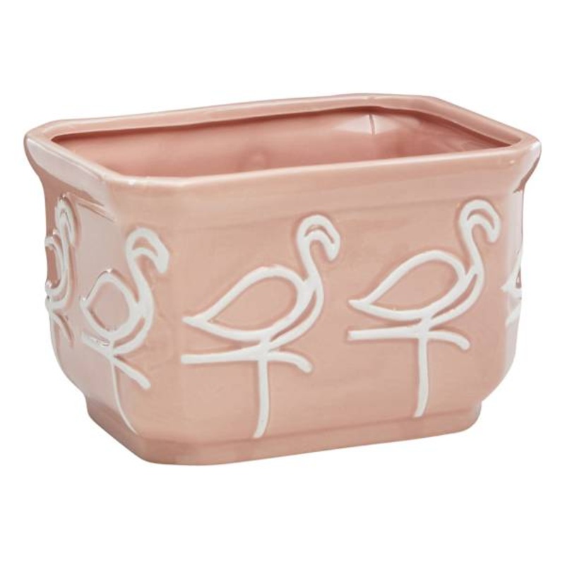 A collection that lets everyone relax in style. Polished finishes and classic hues pair with fun finds. Providence is where elegant settings still feel comfortable and warm-exclusively At Home. Highlight your green thumb and showcase your annuals and perennials at your front door or lend a pop of festive foliage to the deck with our 5in. Providence Indoor Pink Flamingo Ceramic Square Planter. More than just a spot to display your gardening skills, this wonderfully whimsical pot offers a convenient display with its interesting shape. Designed to live indoors or in a covered outdoor space, it’s ready and waiting to make your plants pop.Dimensions6.7″ L x4.8″ W x4.3″ H Weight1.4 lbs.ColorpinkMaterialCeramicDepartmentPatioLocationOutdoor DcorUPC197154137482Location ID42-GL02D