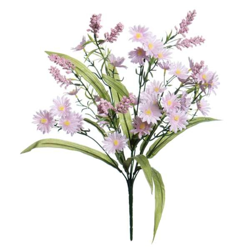 Our 19in. Purple Daisy and Heather Bush is designed to add extra personality to your seasonal decorating. Spray bundles are for indoor use only. This wonderful purple, white, pink and green artificial stem features wire throughout for shaping and long dura
