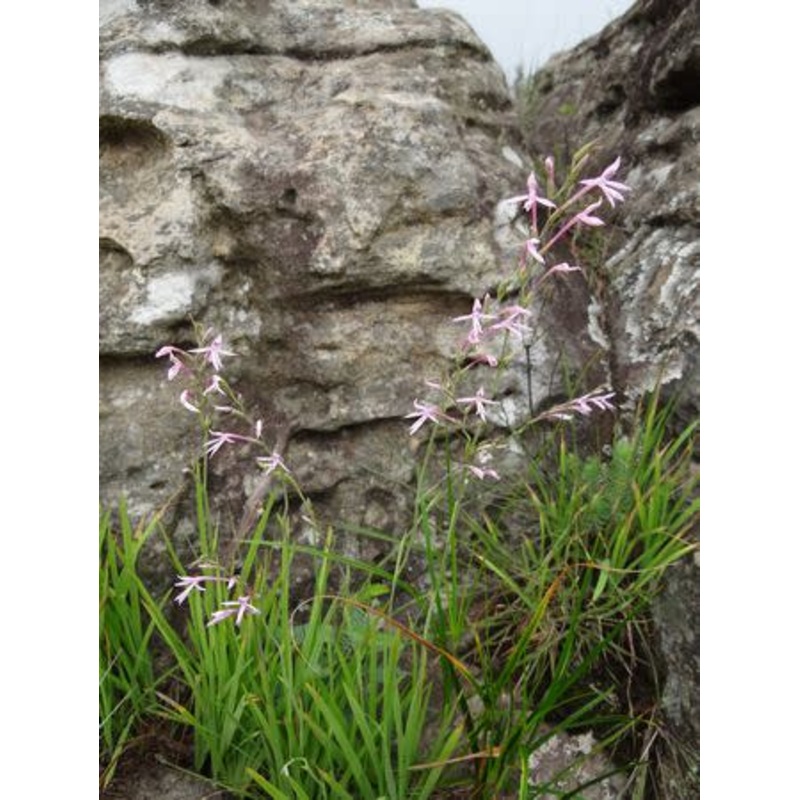 Radinosiphon is a genus of flowering plants in the family Iridaceae first described as a genus in 1932. It is native to southern + south-eastern Africa. The genus name is derived from the Greek words radinosus, meaning “slender”, and siphon, meaning “tube”. Growing to 50cm with several narrow basal leaves and 4-12 pink green to purple flowers per stem flowering in the summer. USDA Zone – 8 Season to Sow – Spring Photos with credit to the late Rod and Rachel Saunders, eminent experts on South African indigenous flora. |