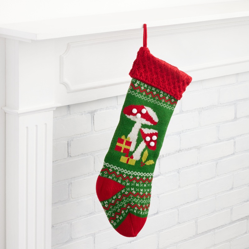 Red And Green Knit Mushroom Christmas Stocking