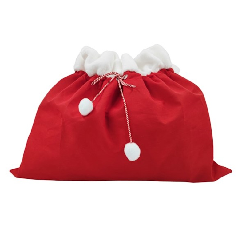 Make a big statement with the 38x30in. Red Jumbo Gift Bag. This bold red and white fabric bag is built for oversized surprises, from bulky boxes to plush toys and cozy throws. The reusable fabric design makes wrapping fast and fuss-free, then folds flat fo