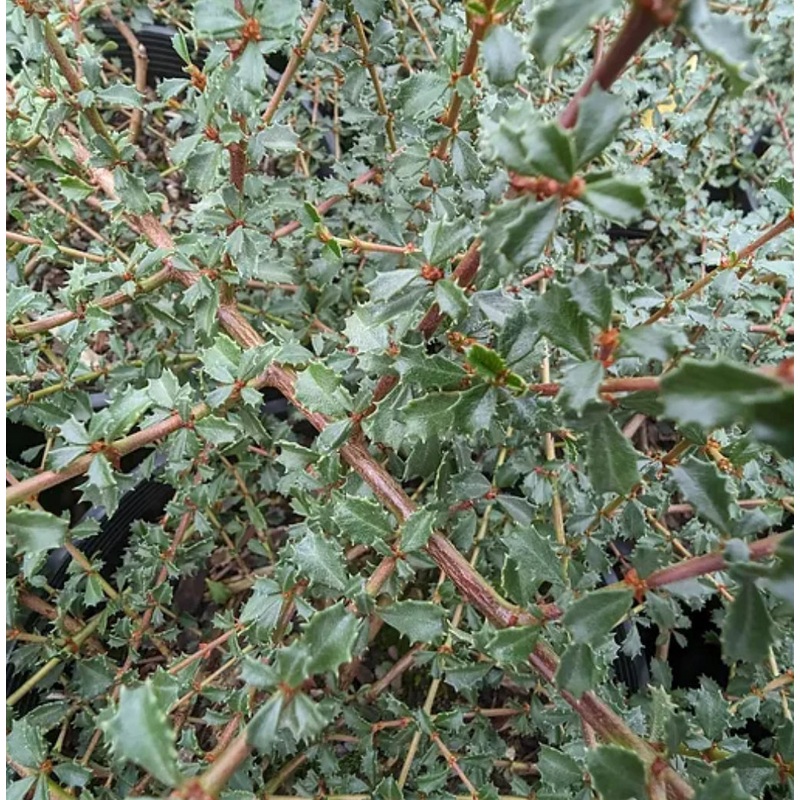 Rare, sprawling, tough evergreen Ceanothus with a mass of bright blue flowers in spring and small, holly-like leaves that create a wonderful dark mat of foliage for difficult slopes and as a native groundcover. Height to only 12" but with an eventual sprea
