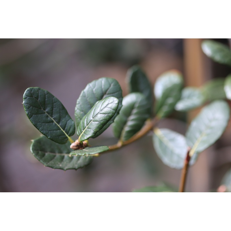 Another fabulous evergreen oak, this to 20-25 ft tall with a rounded, pyramidal form and small leaves, dark green and shiny above with velvety brown indumentum on the undersides — the guava leaf oak. This is a Chinese oak that is tolerant of both drought and summer water making it easy to place. A handsome addition to the garden or parking strip. Frost hardy to at least mid USDA zone 8 and probably lower.