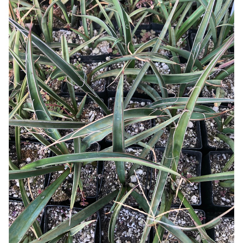 Large single-trunk forming yucca often up to 10 feet tall with 3-5 ft diameter ring of stiff leaves. Flowering stalk short holding numerous greenish white fragrant flowers. Full sun. Frost hardy to 0F, USDA zone 7, or less.TREE YUCCAAgavaceae/Asparagaceae*