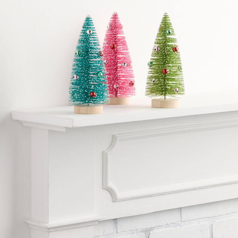 Retro Bright Bottlebrush Tree Decor Set of 3