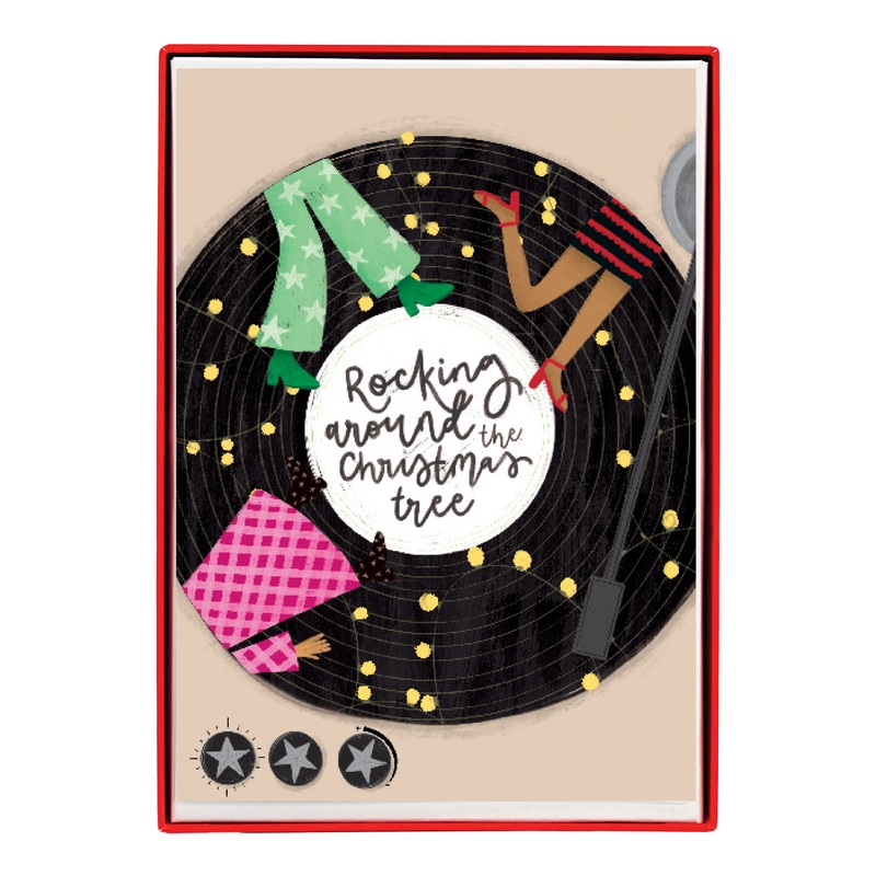 Send groovy holiday cheer this season with this set of boxed cards that have a disco-themed turntable on the front. The outside of the card reads "Rocking around the Christmas tree," and there's a warm message inside. They are a festive way to spread yulet