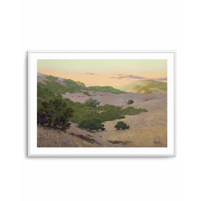 Transform your home's decor with San Juan Bautista Hills by Ed Penniman, a stunning wall art print featuring a green landscape at sunset artwork. Perfect for enhancing your living room, bedroom, dining room, office, or creative space, this high quality lan