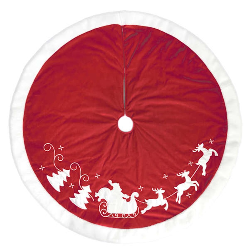 Santa & Tree Embroidered Red Tree Skirt, 48″